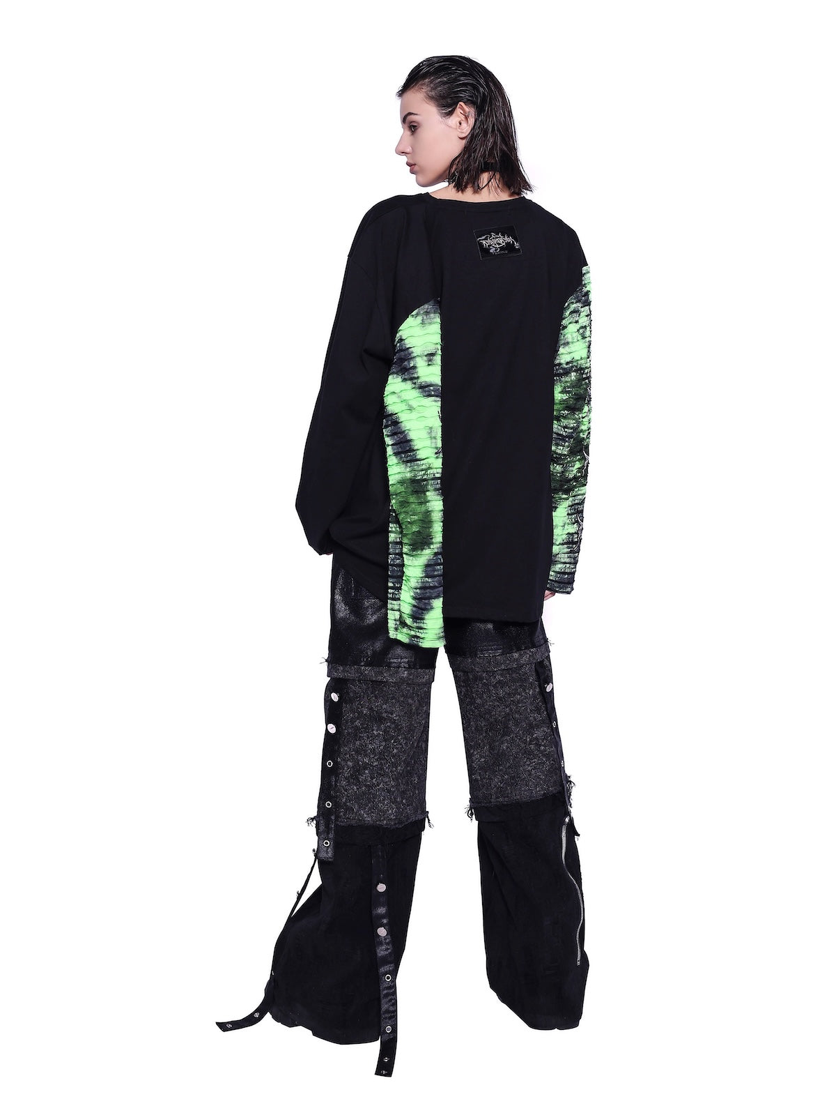 - 緑の袖には重ねたフリルのようなディテールと月の刺繍があります