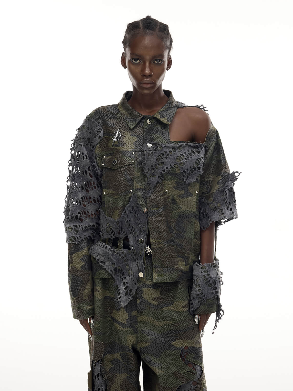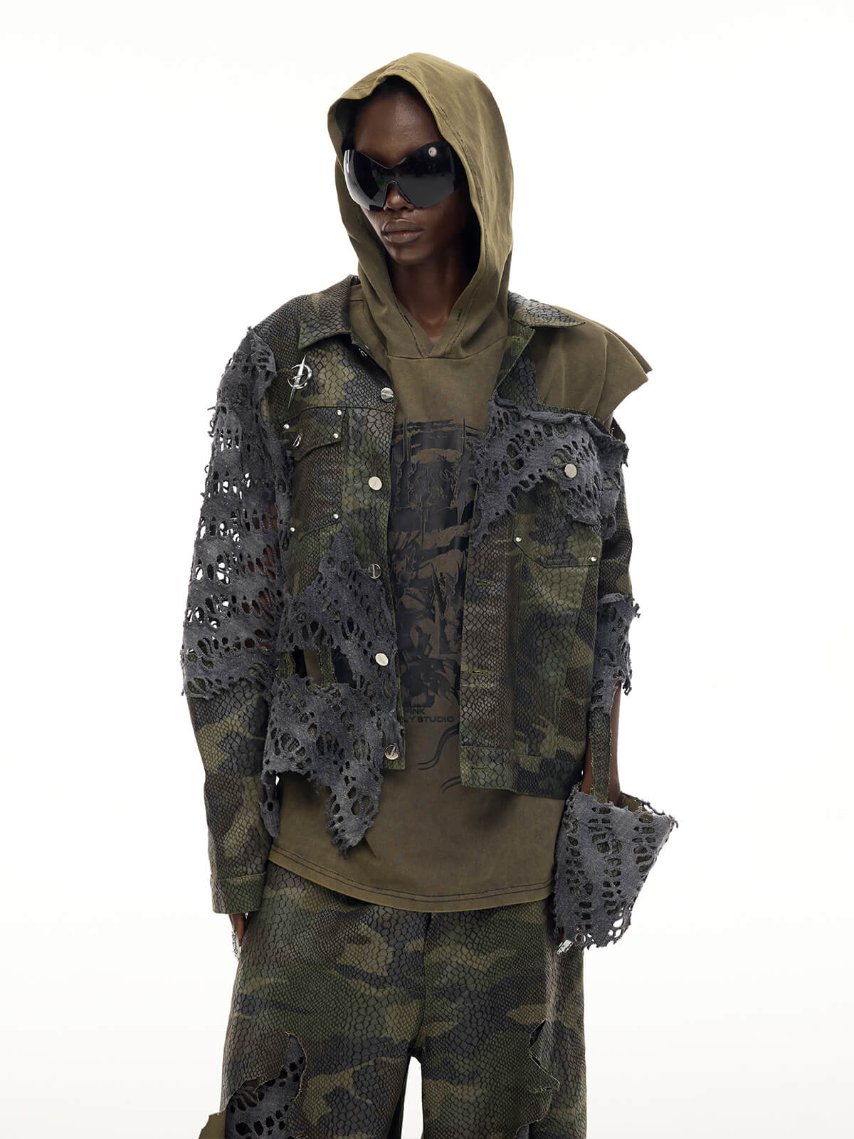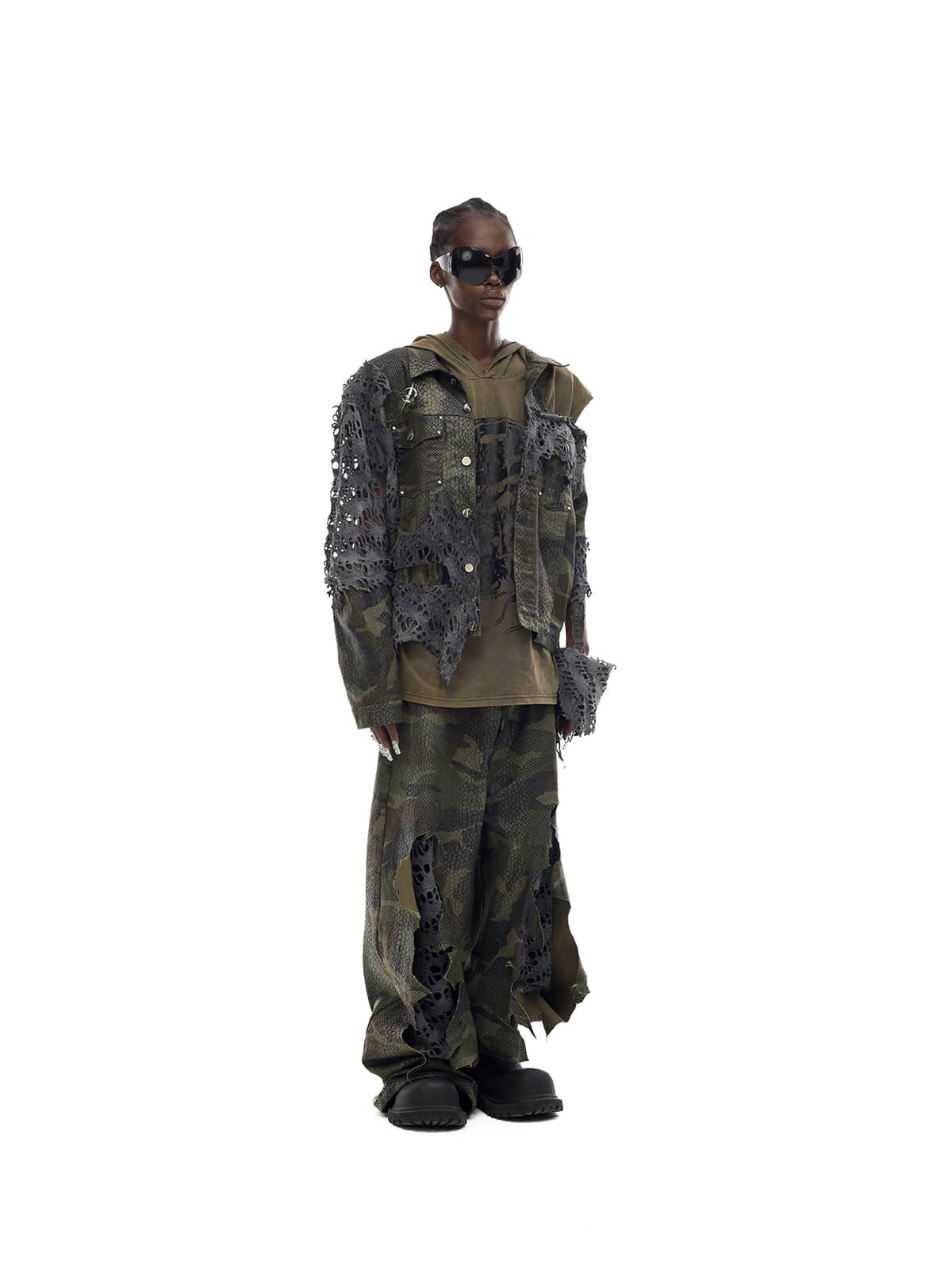- 重いダメージ加工のオーバーサイズシルエット