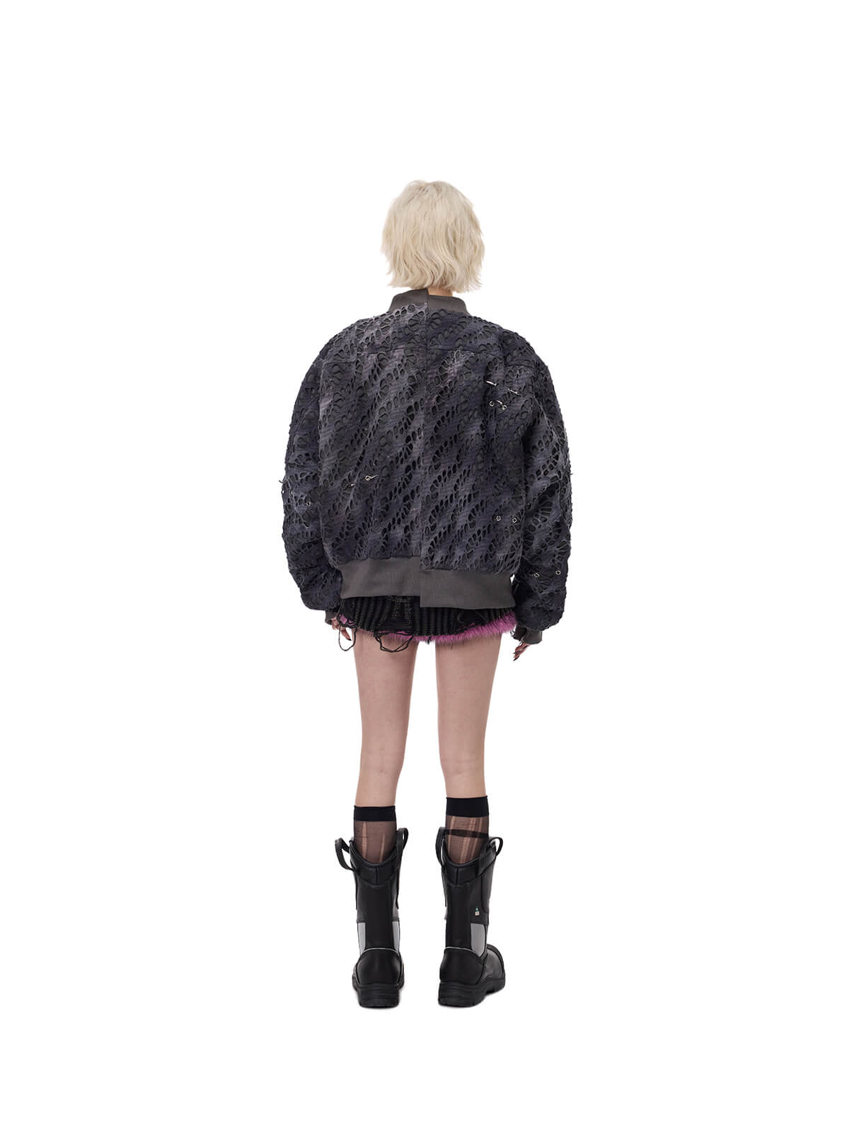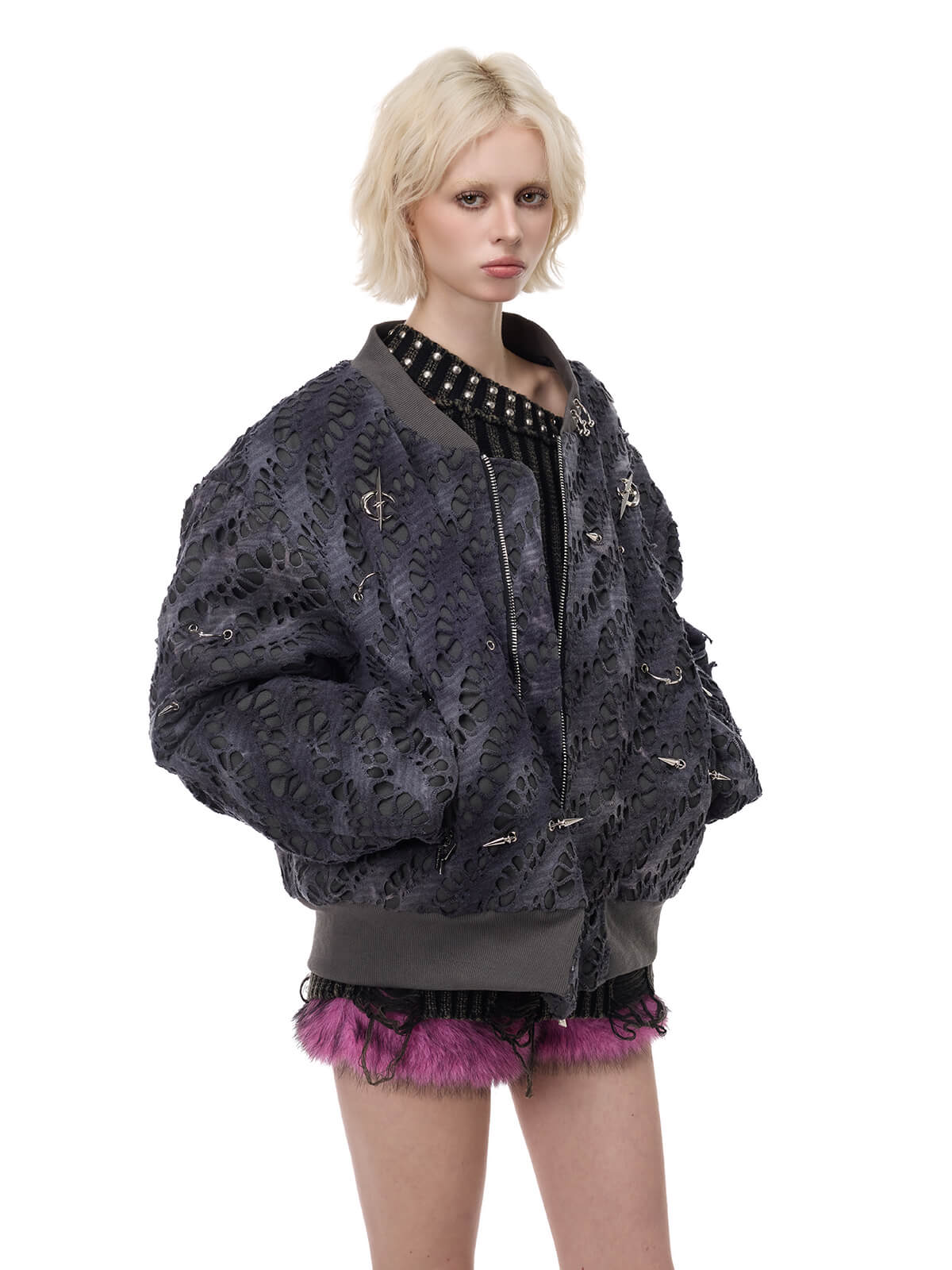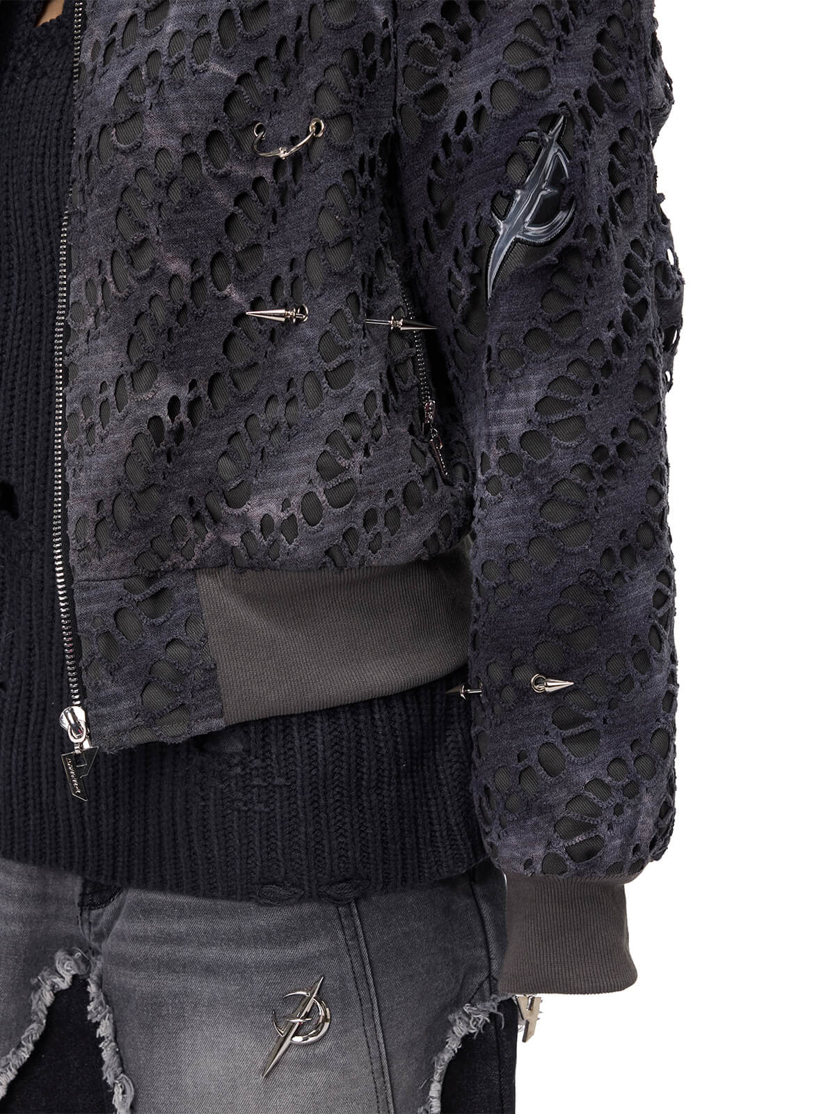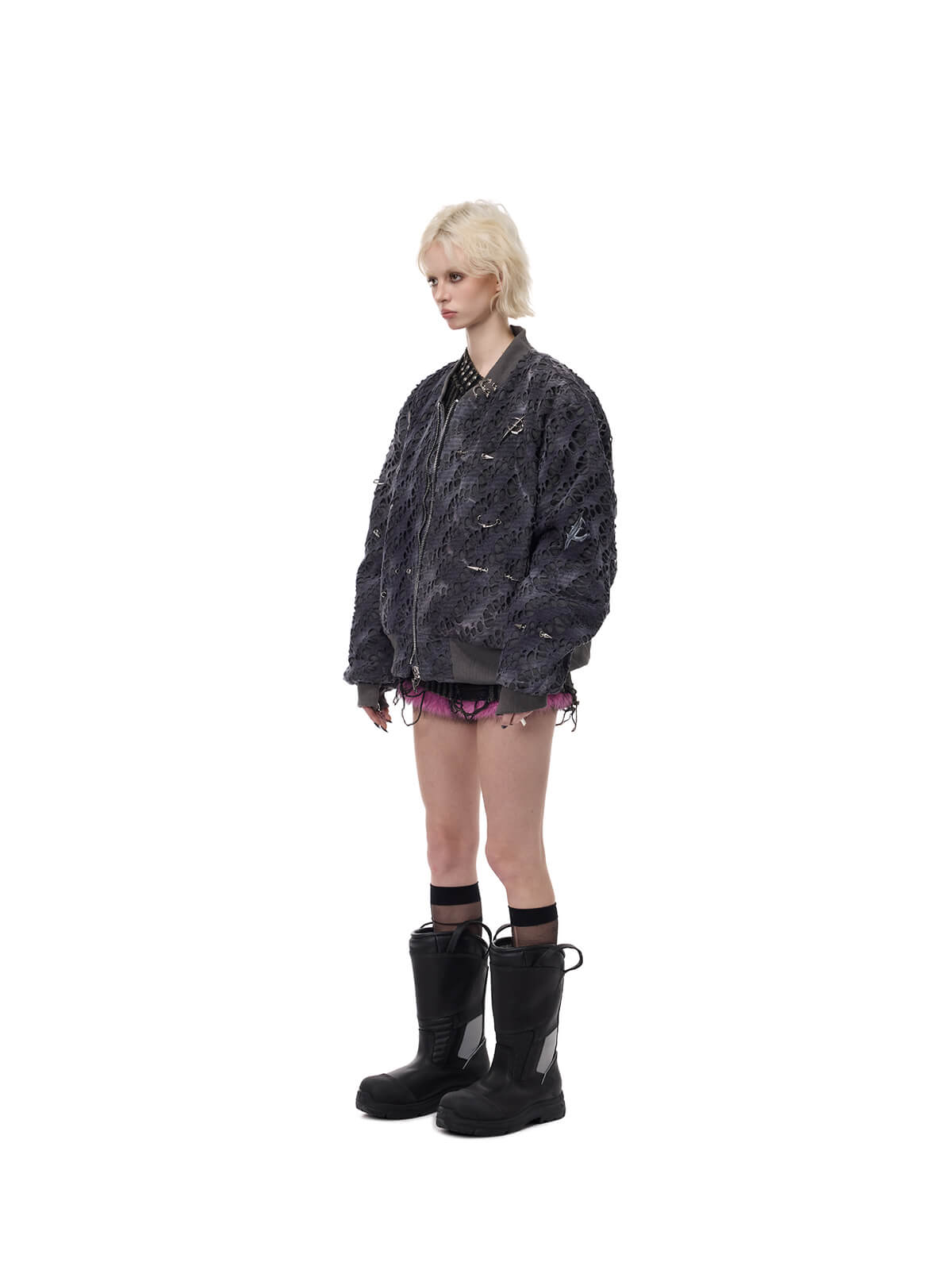 ダメージ加工メッシュのオーバーサイズパンクボンバー