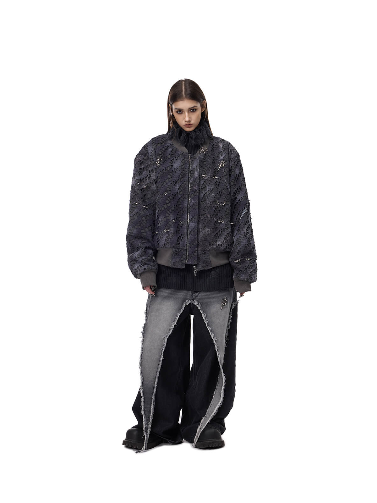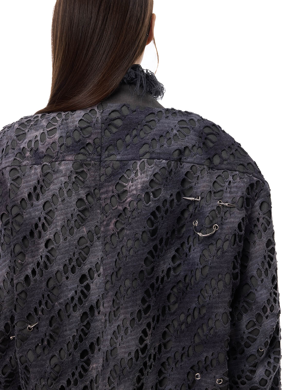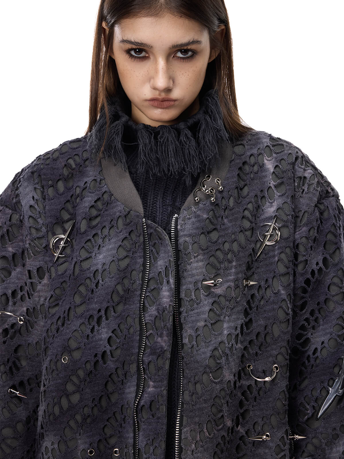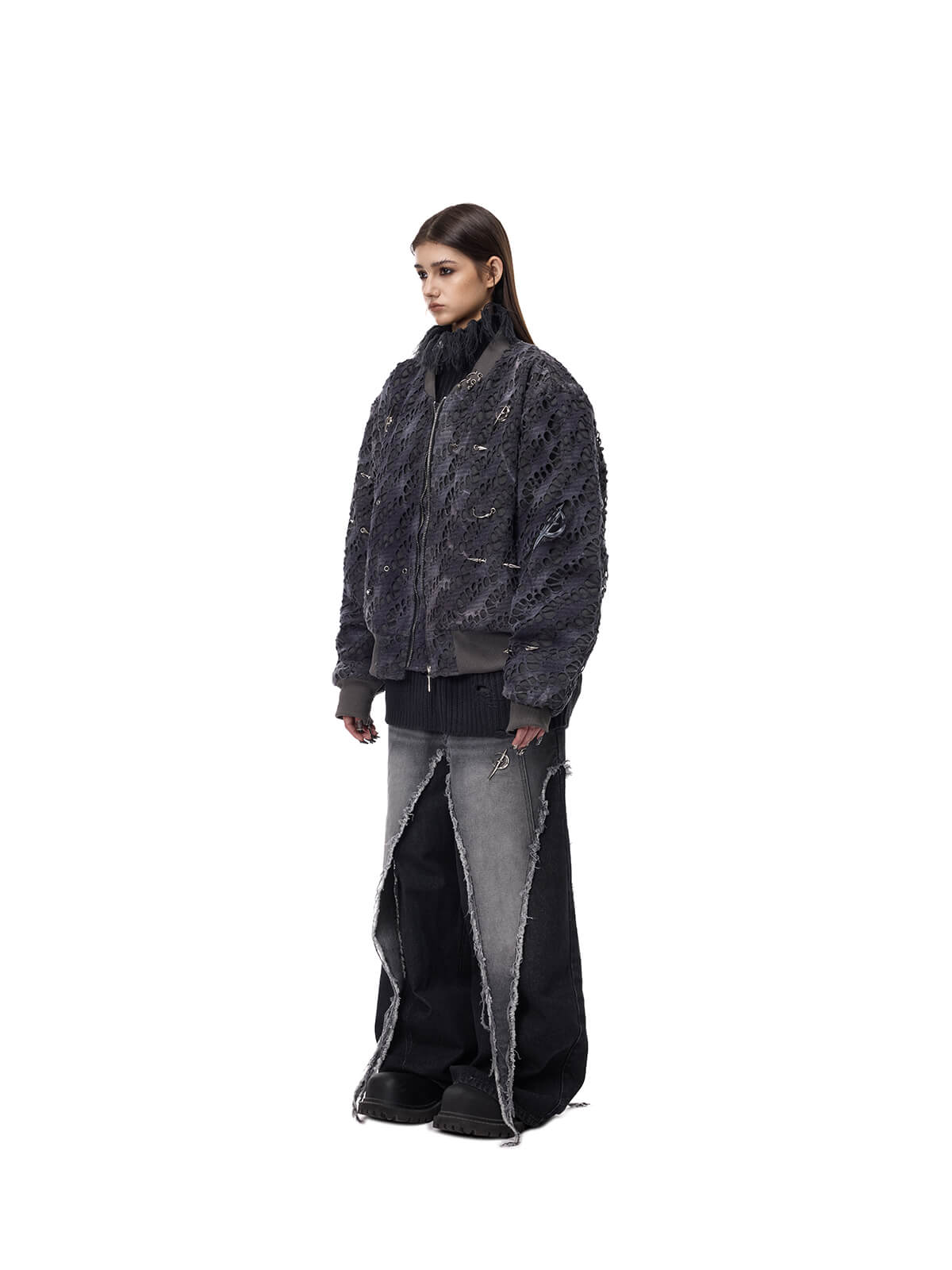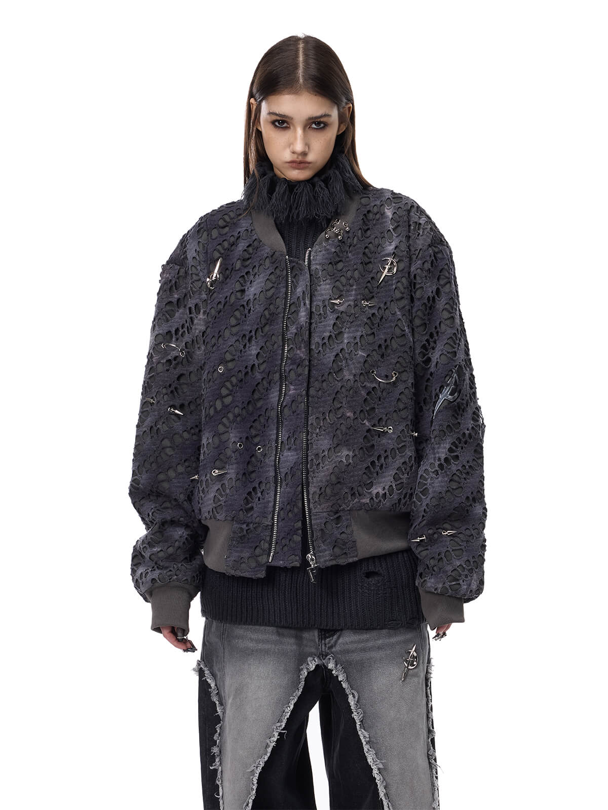 ダメージ加工メッシュのオーバーサイズパンクボンバー