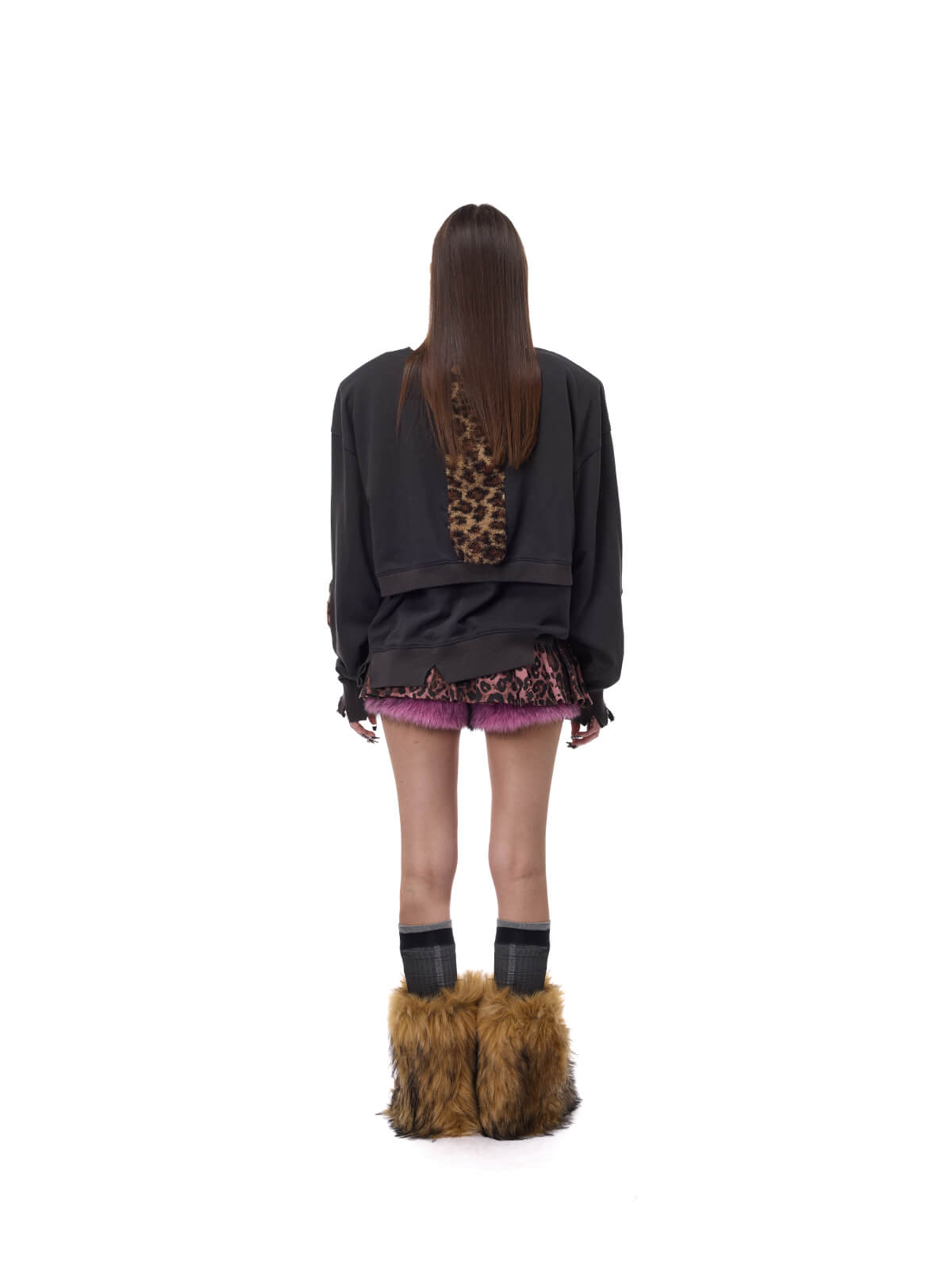 ヒョウ柄の心の毛織物シャツ