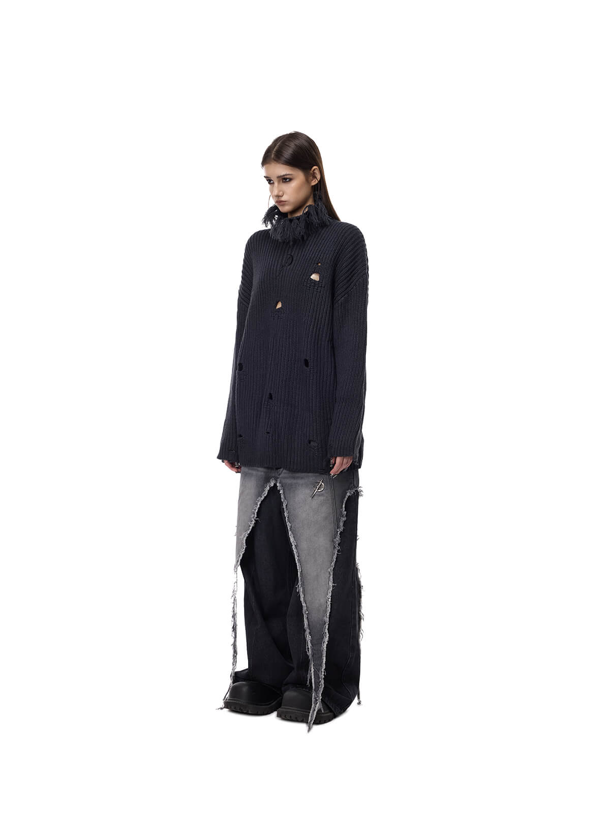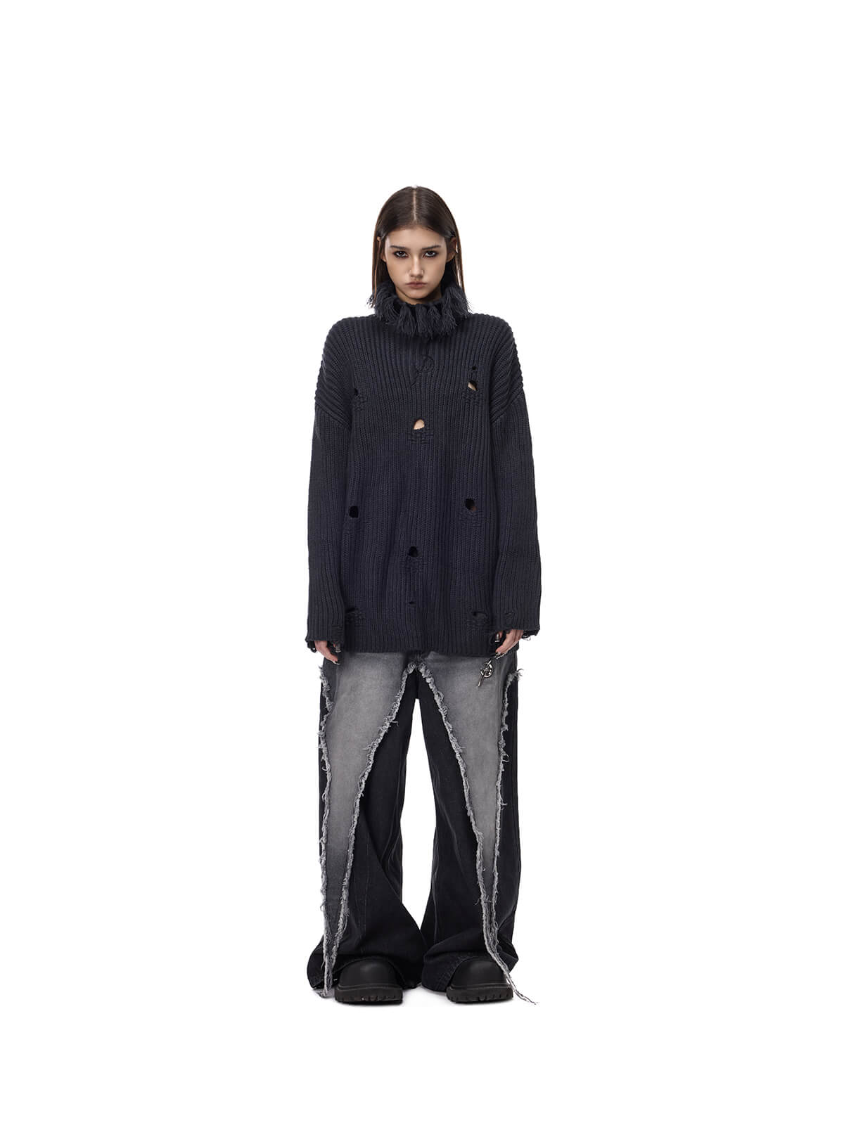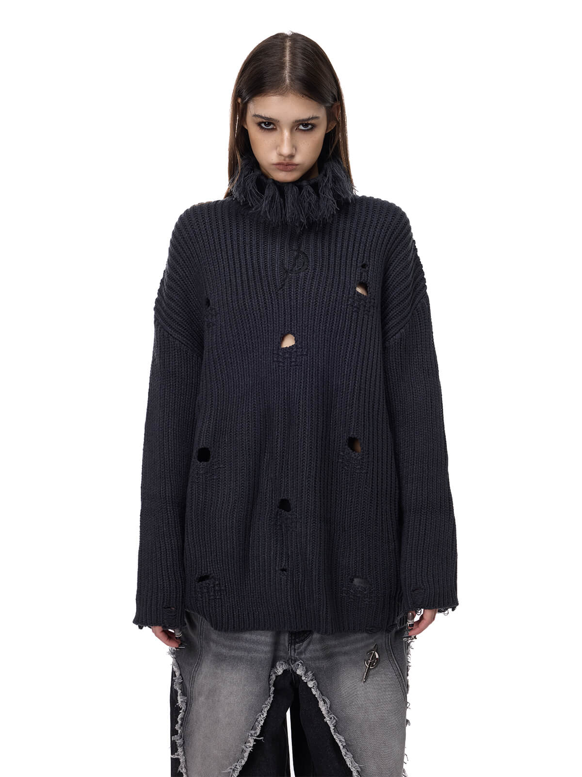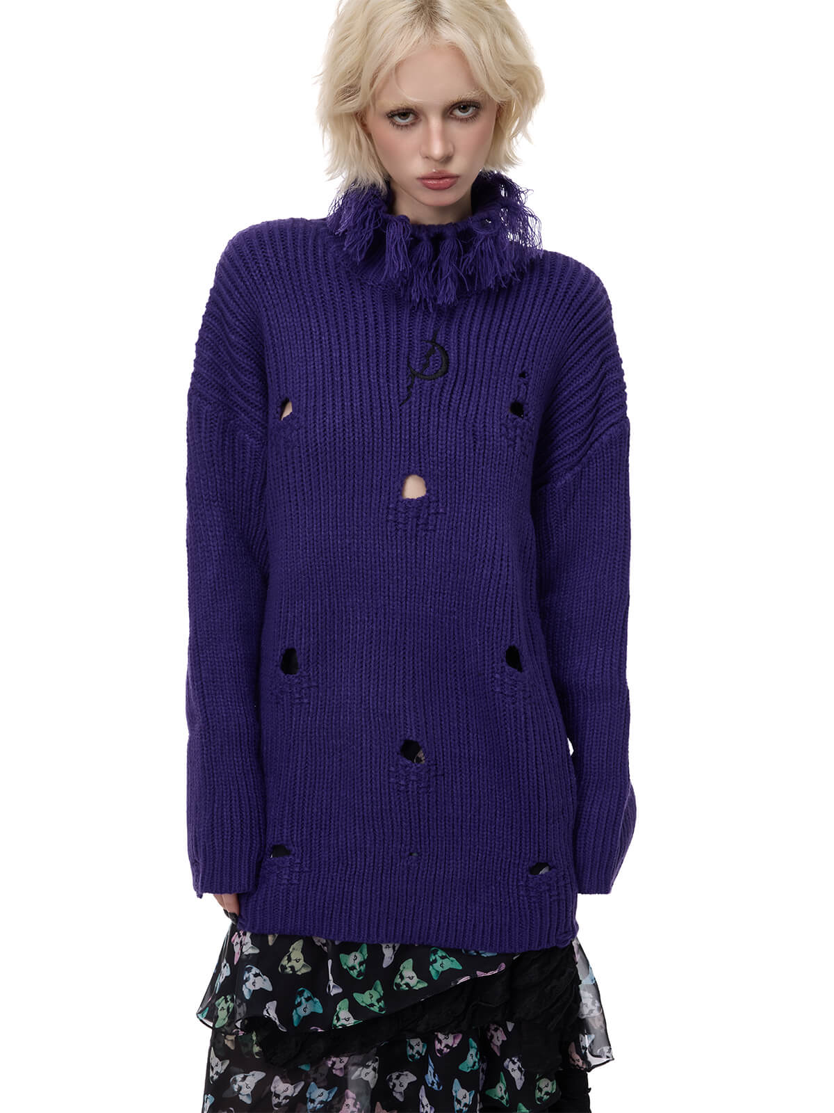 房飾り付き高襟編み物