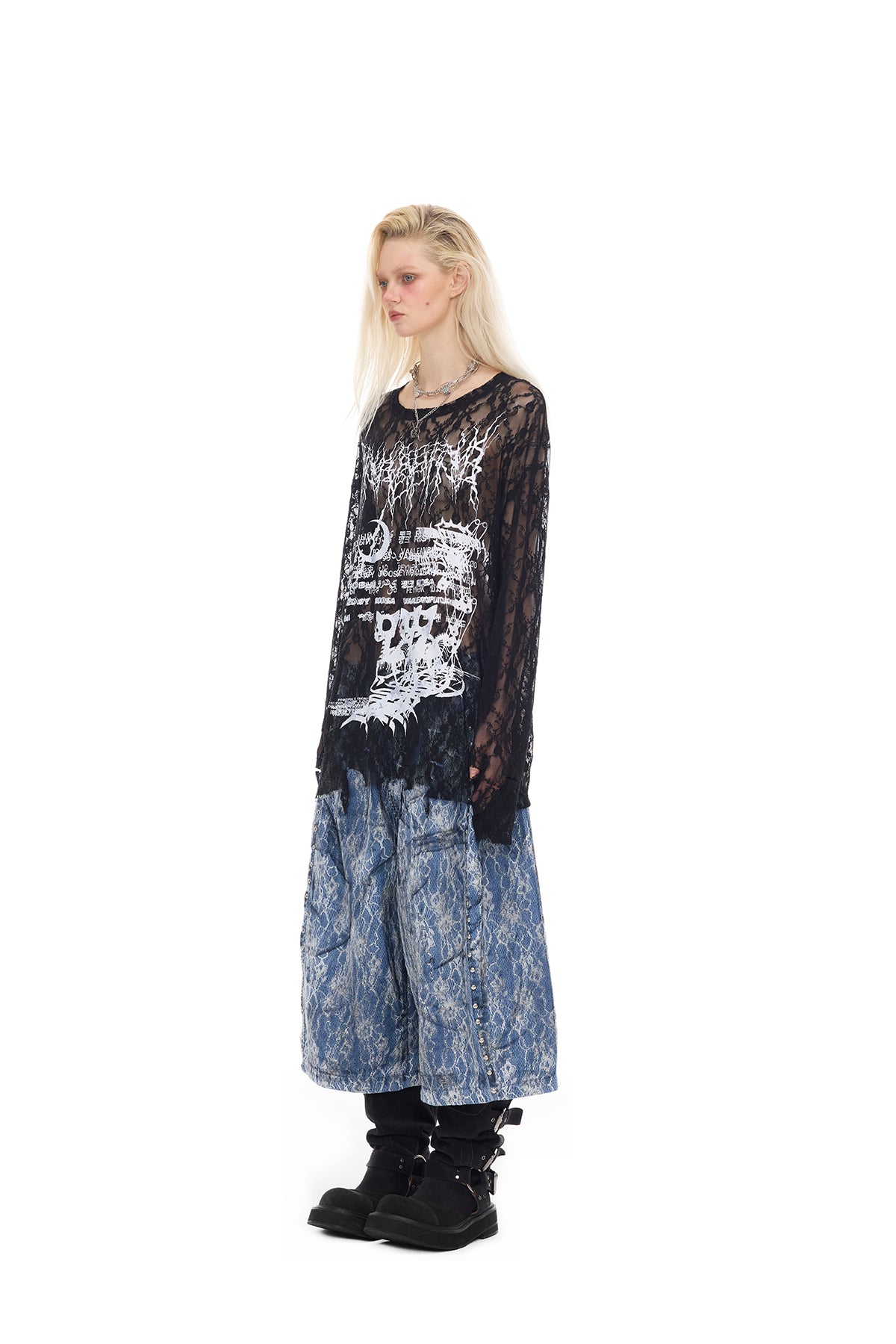 ゆったりとした長袖の透ける花柄レース