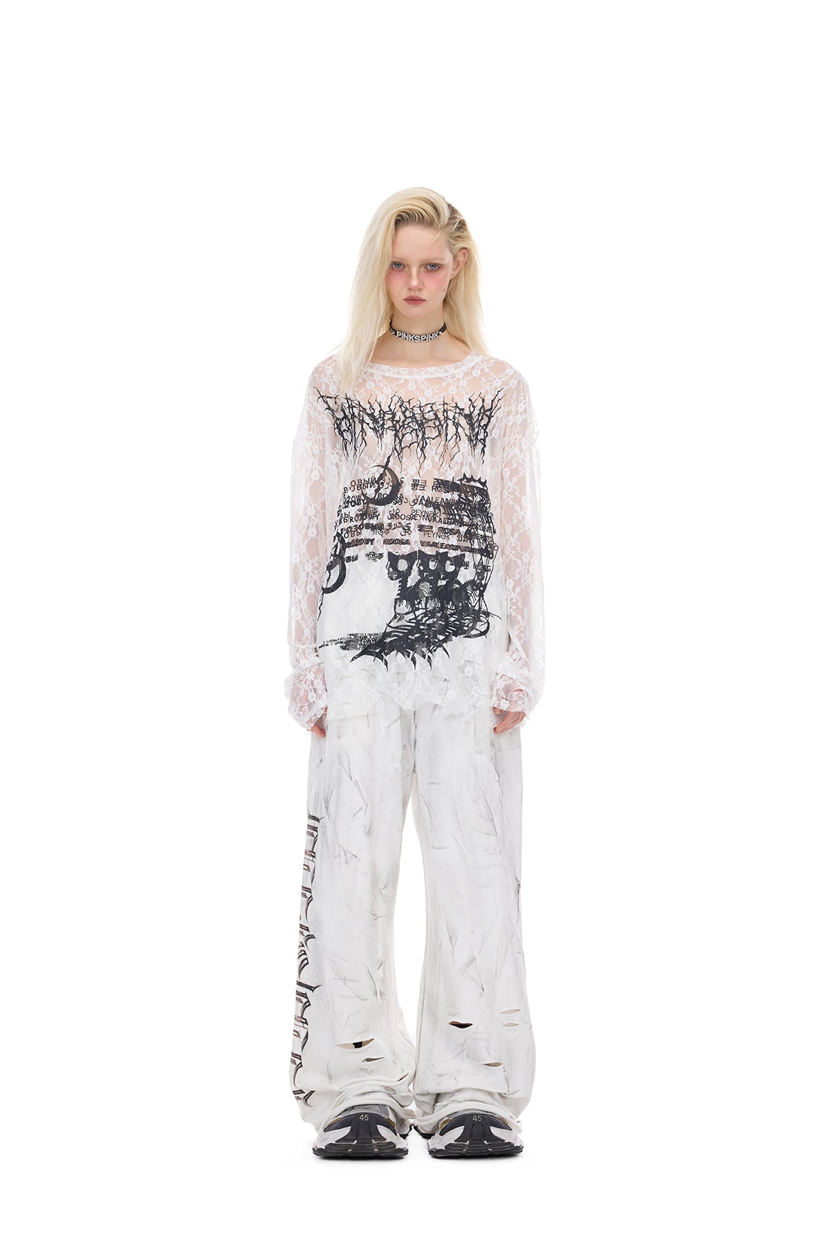 • 胸にペイントされたブランドロゴプリント