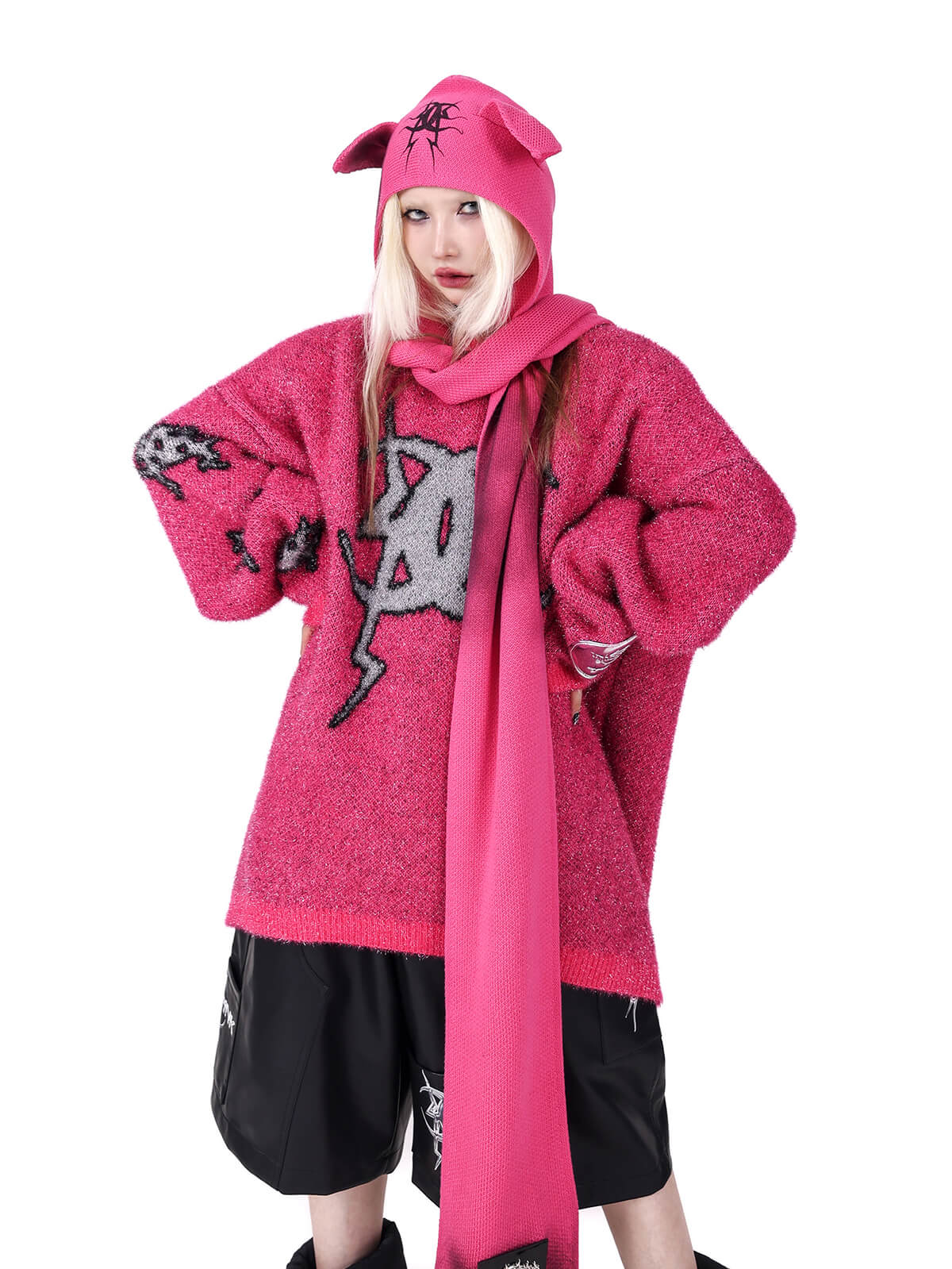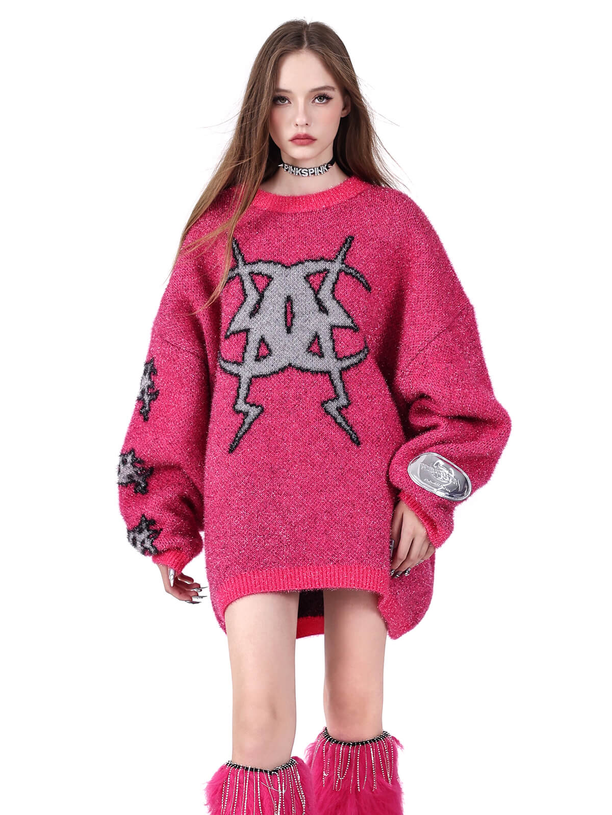 きらめくニットのオーバーサイズセーター
