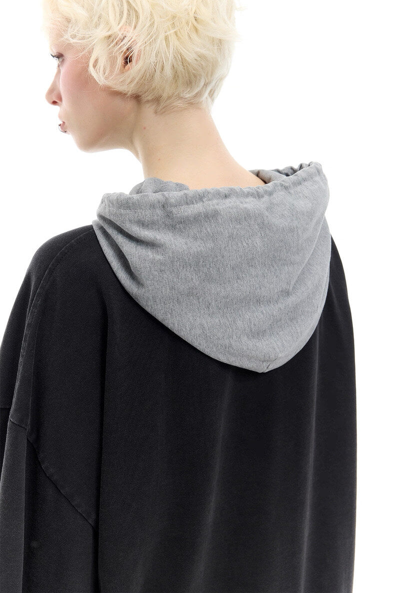 Three-in-one reconstructed hoodie with raw-edge detailing
