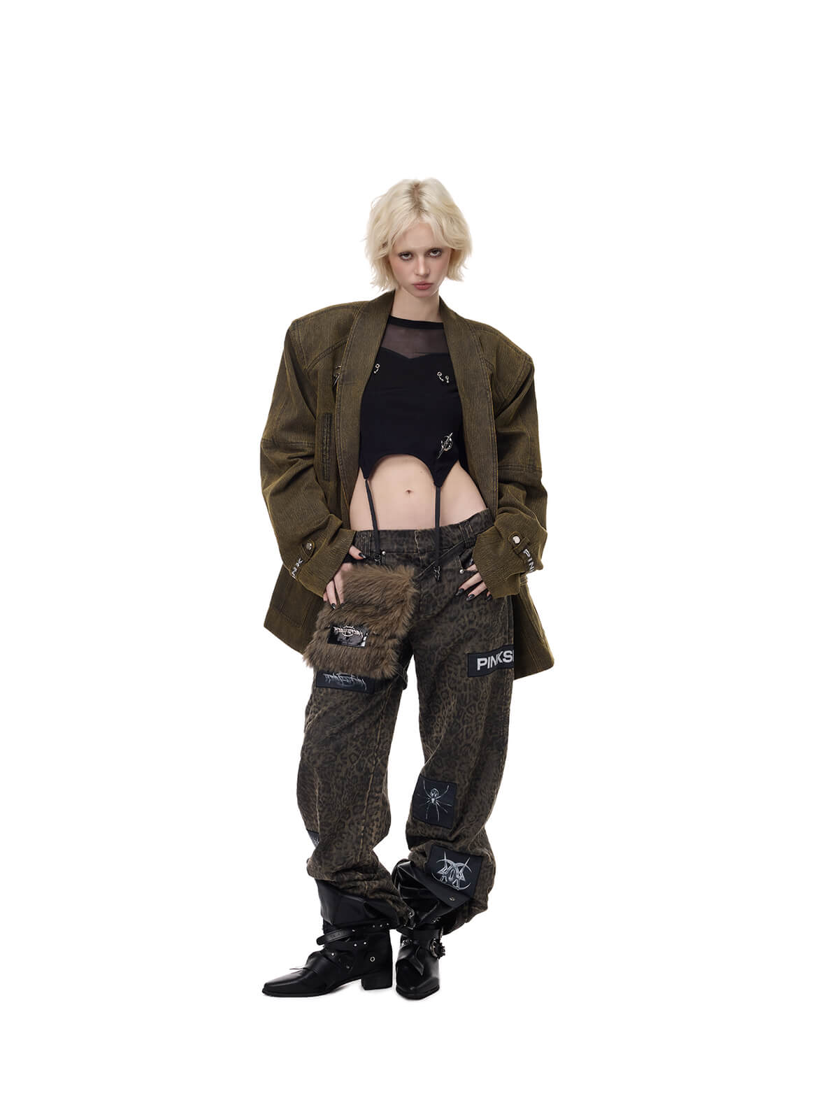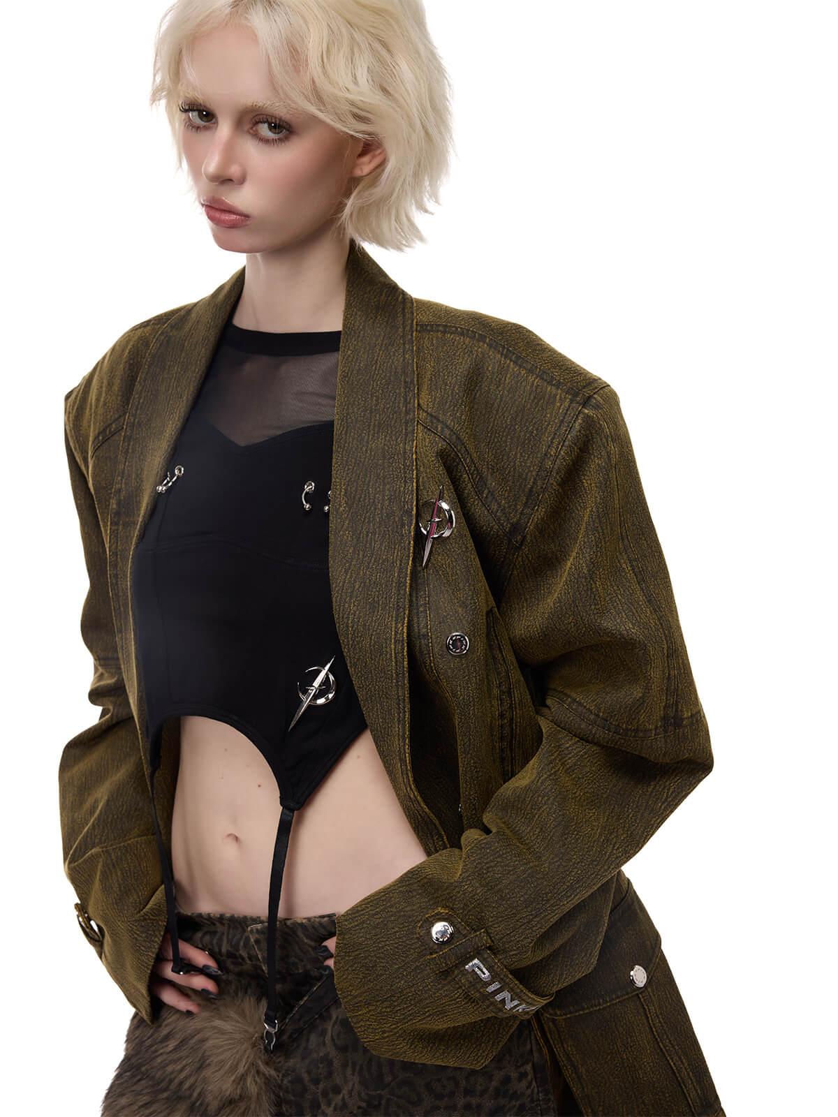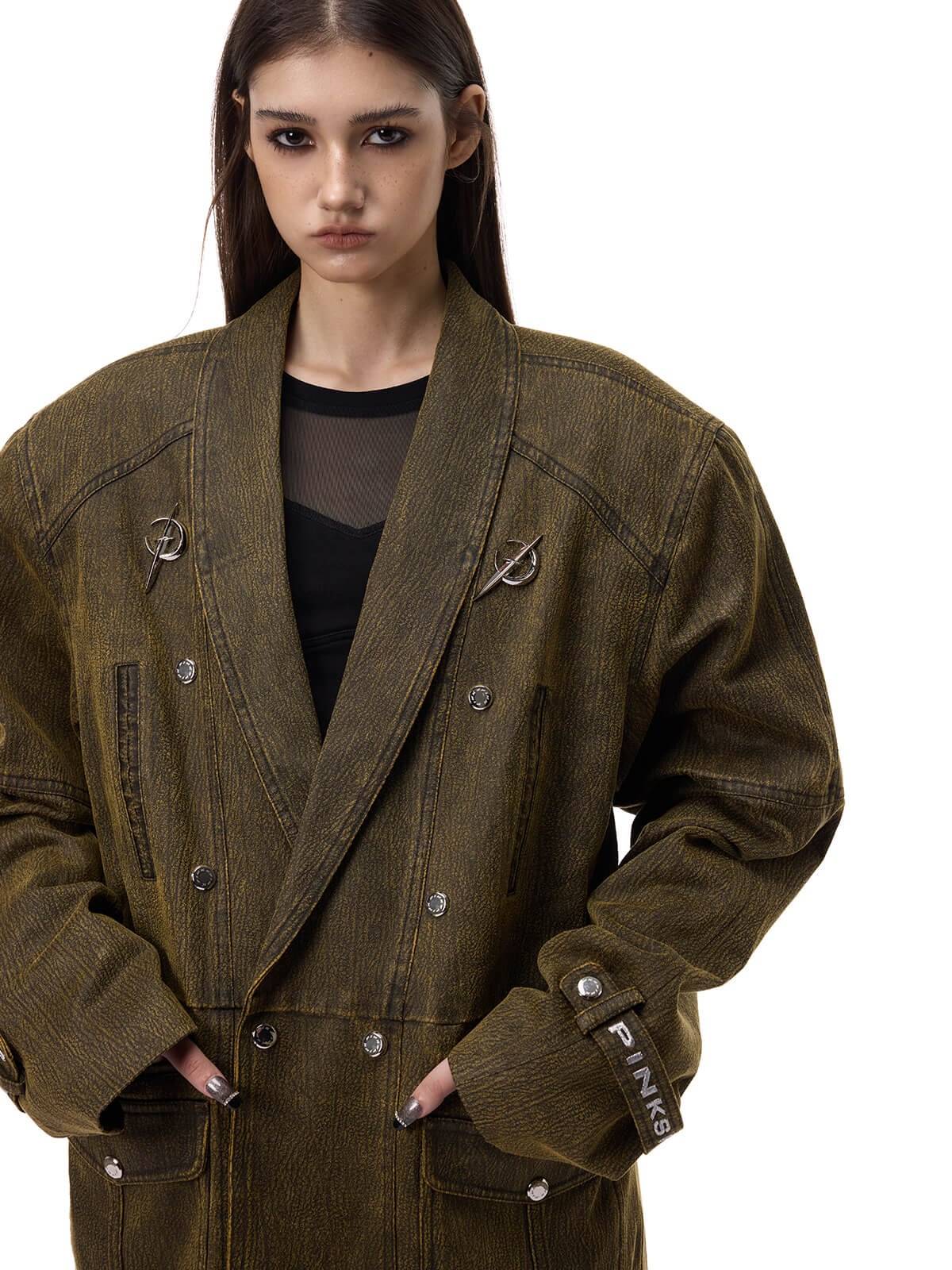 • 袖のメタルロゴピンとストラップカフス