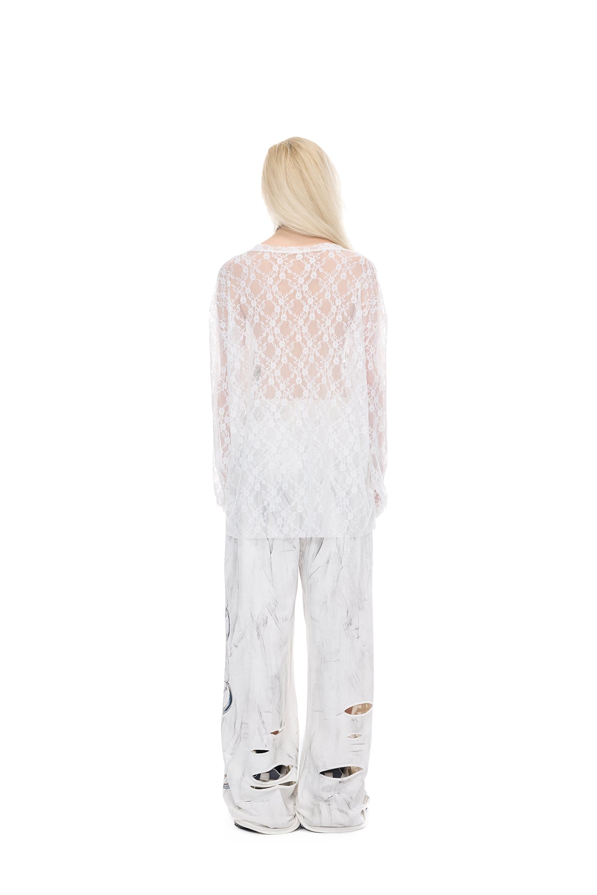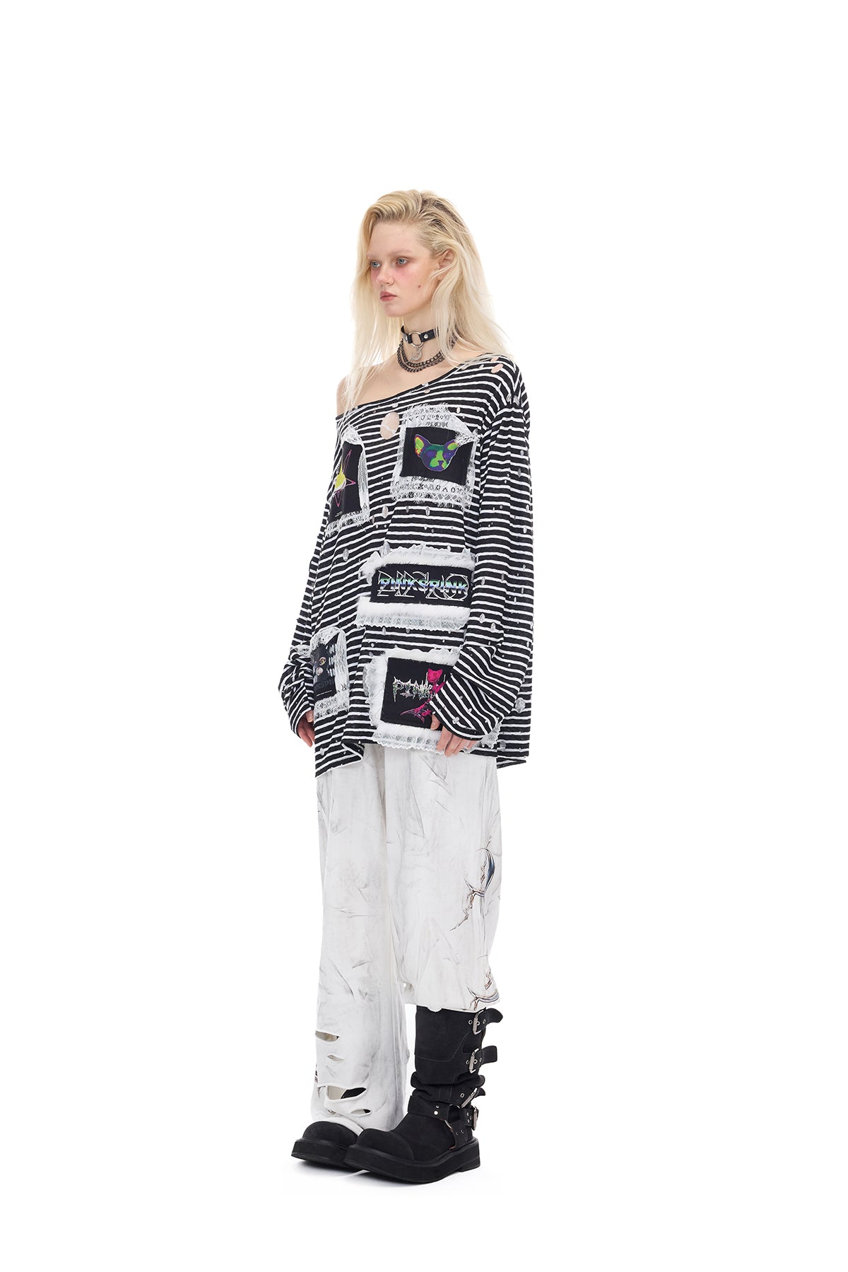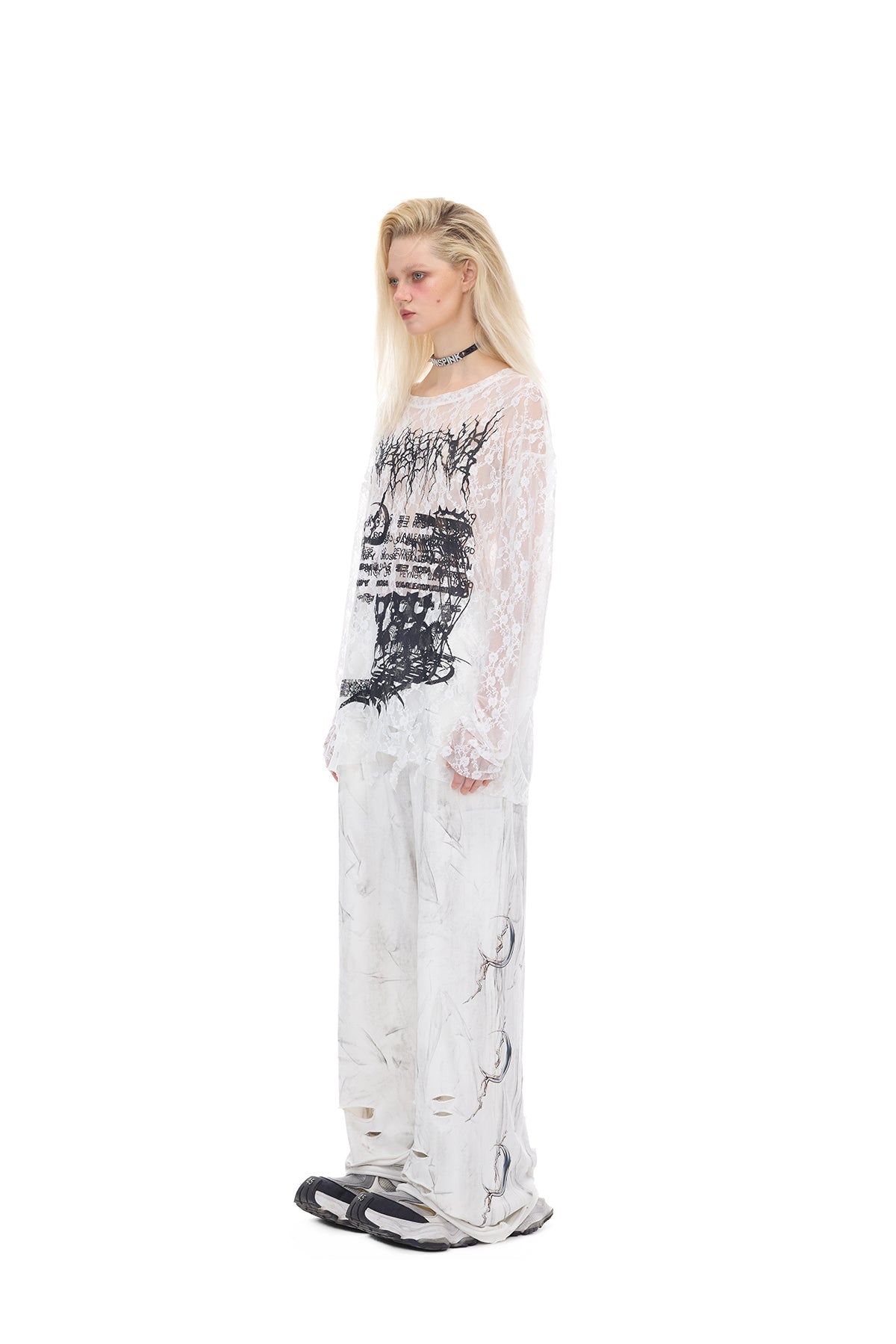 リラックスフィットのスウェットパンツ、ダメージ加工付き