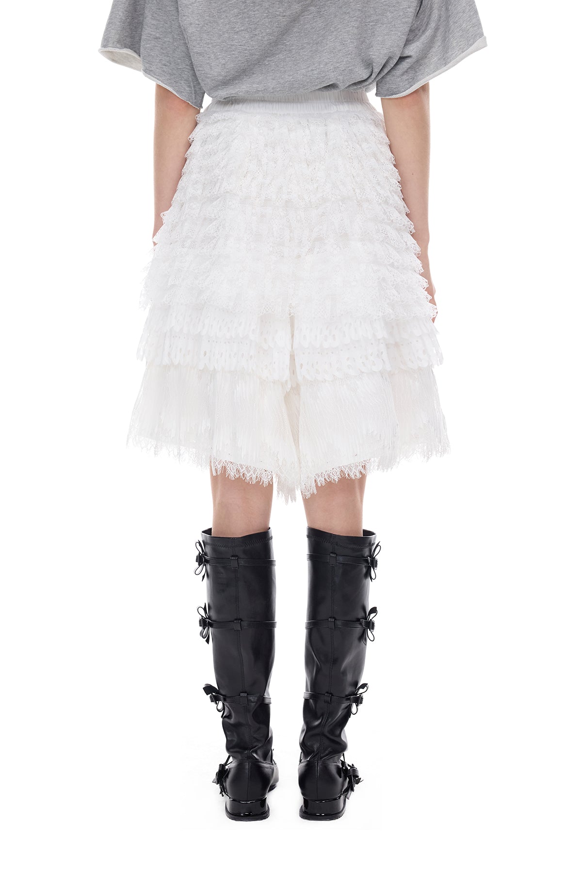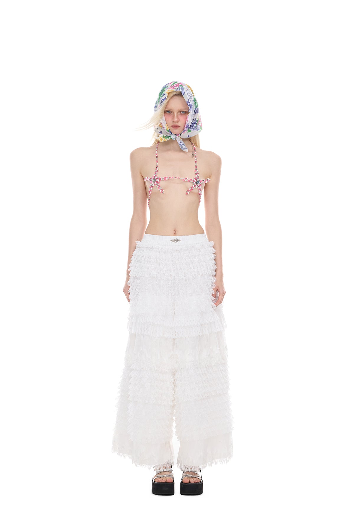 • 3つの異なるパターンのレース層が連続した部分として縫い合わされています