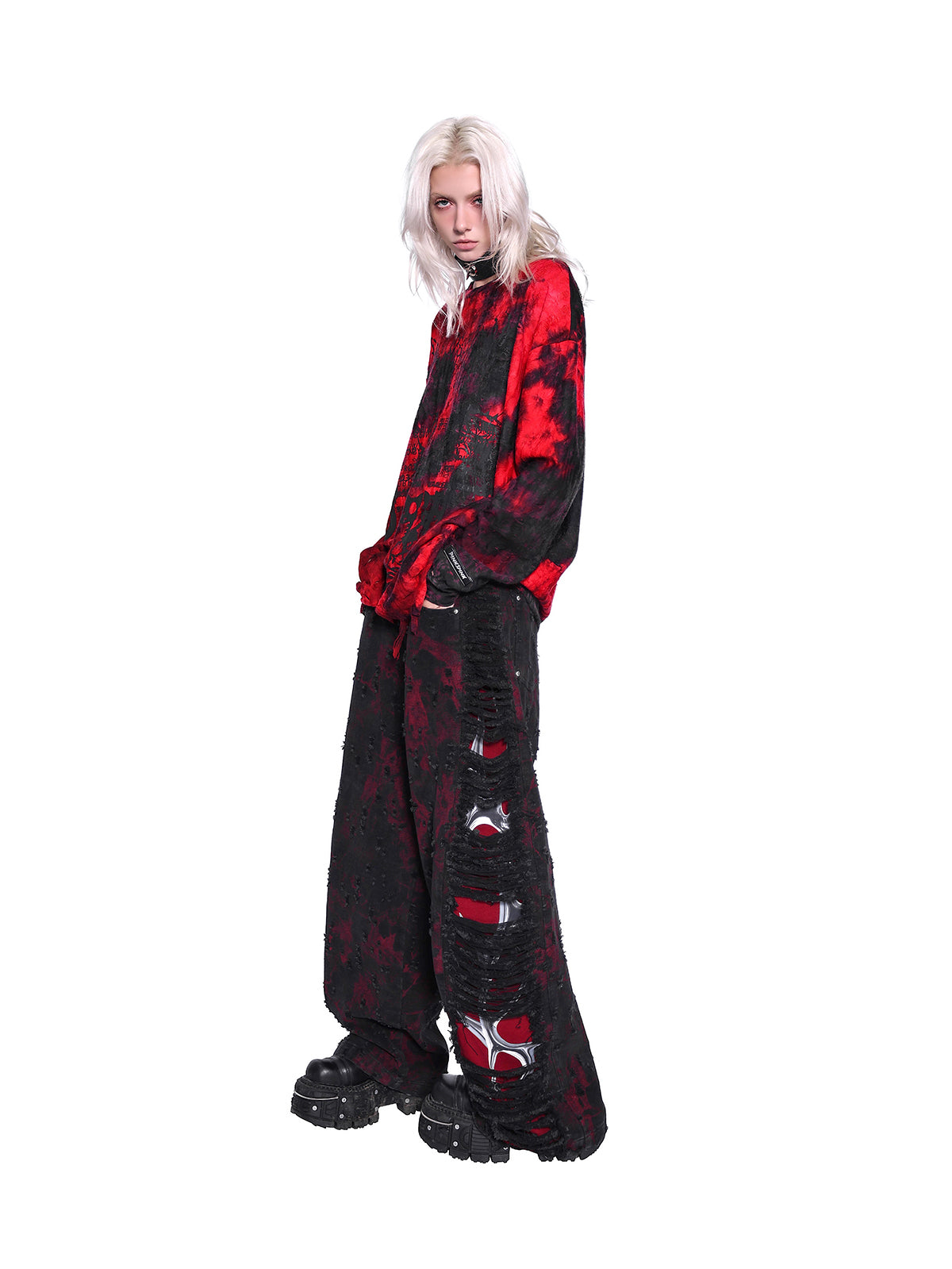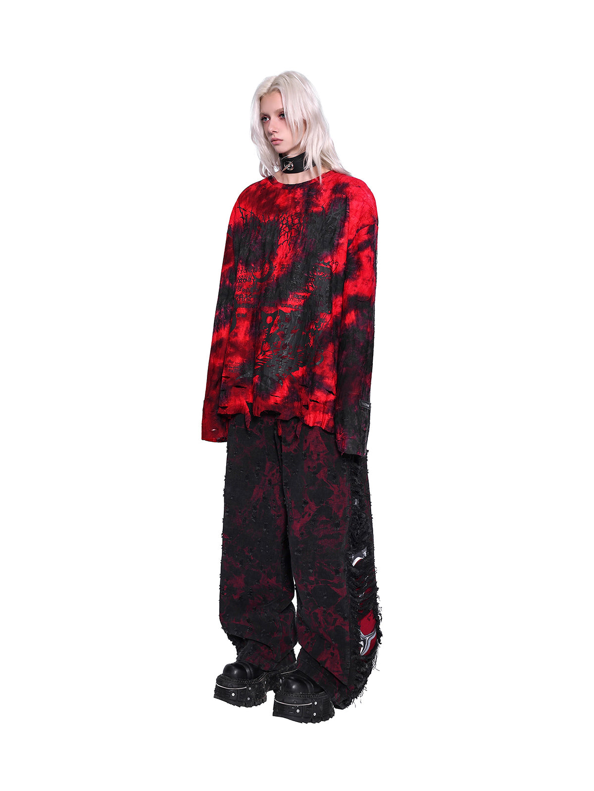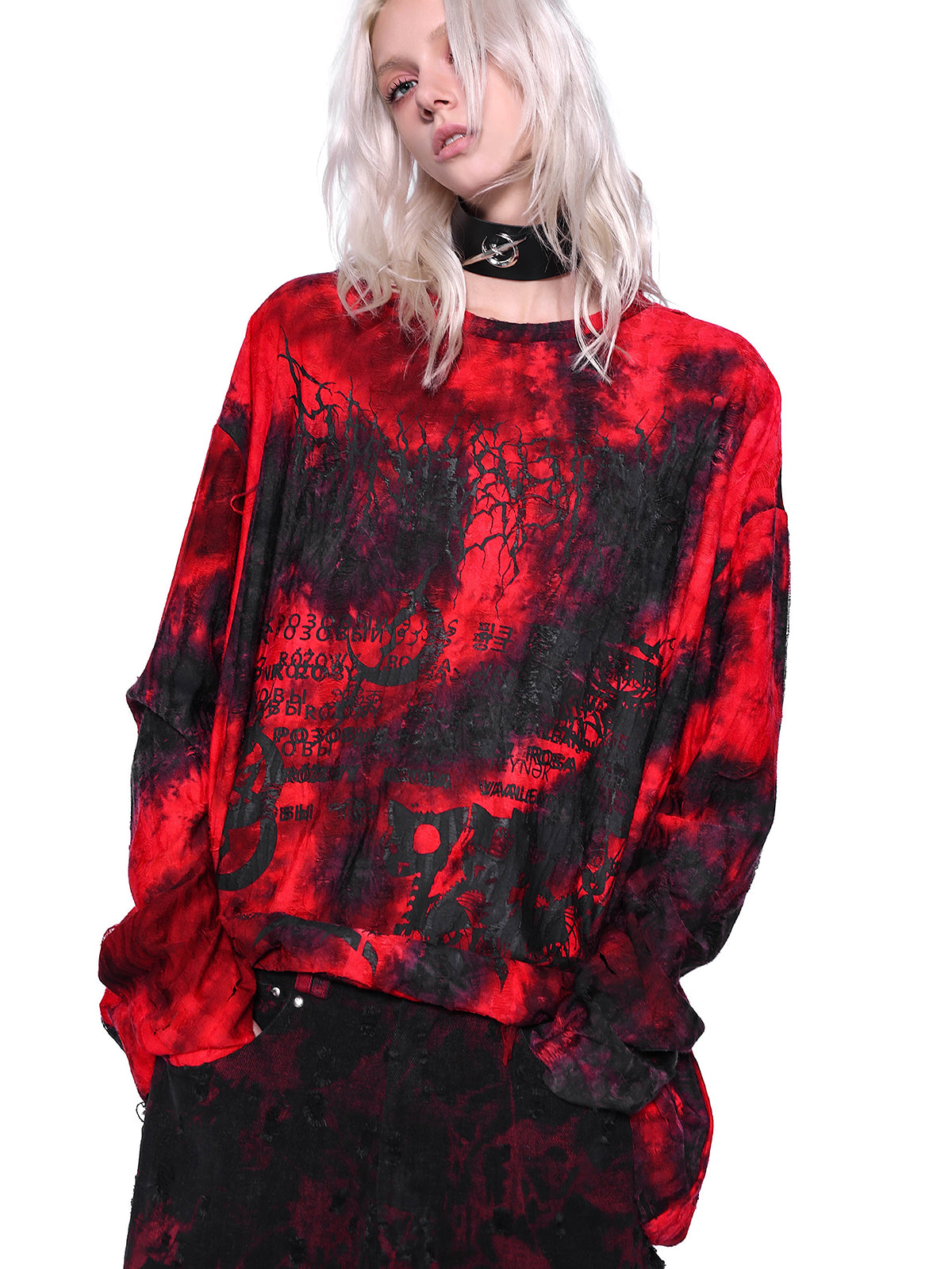 ダメージデザインのロングスリーブTシャツ