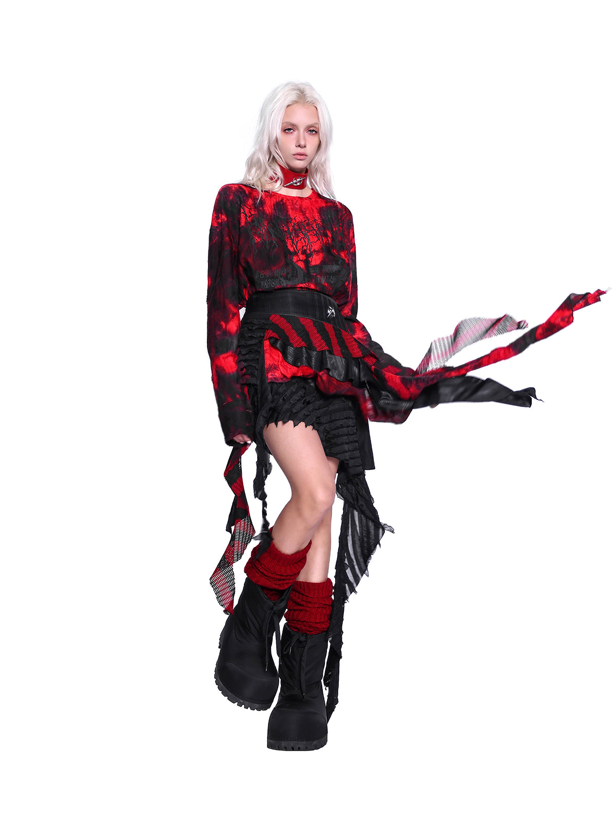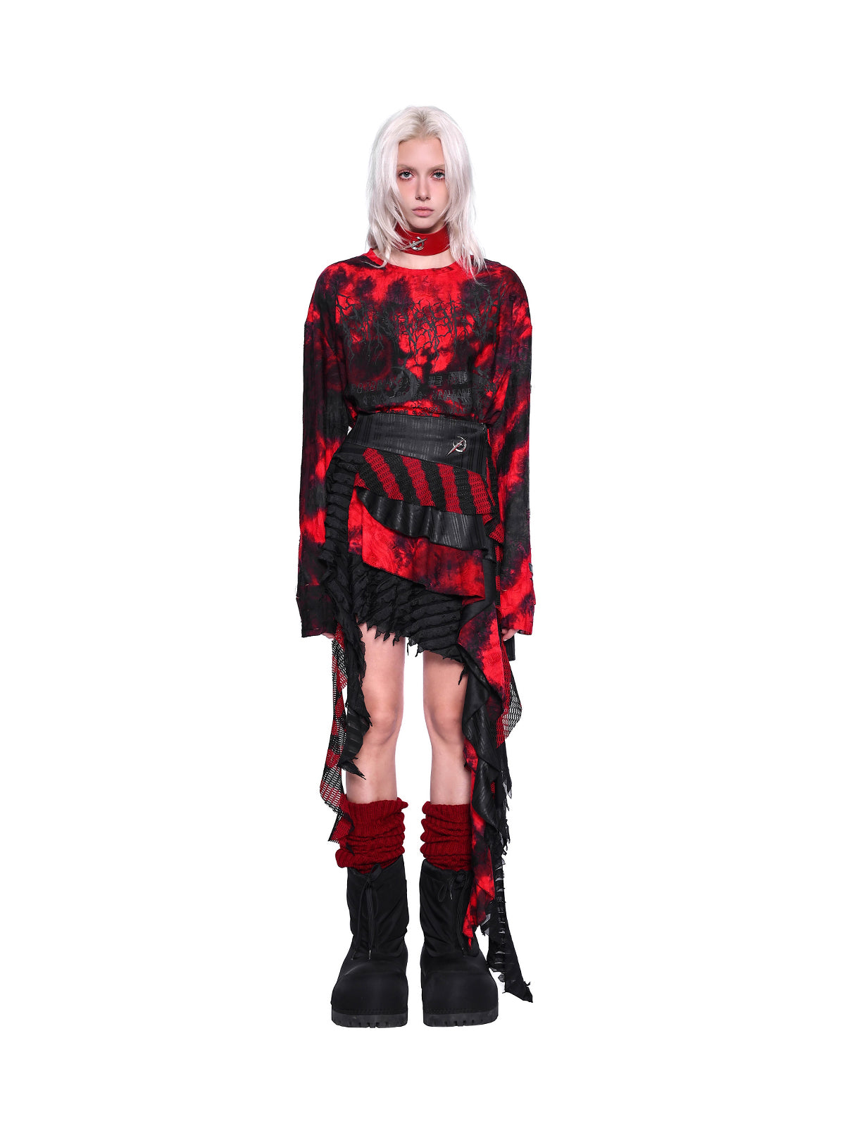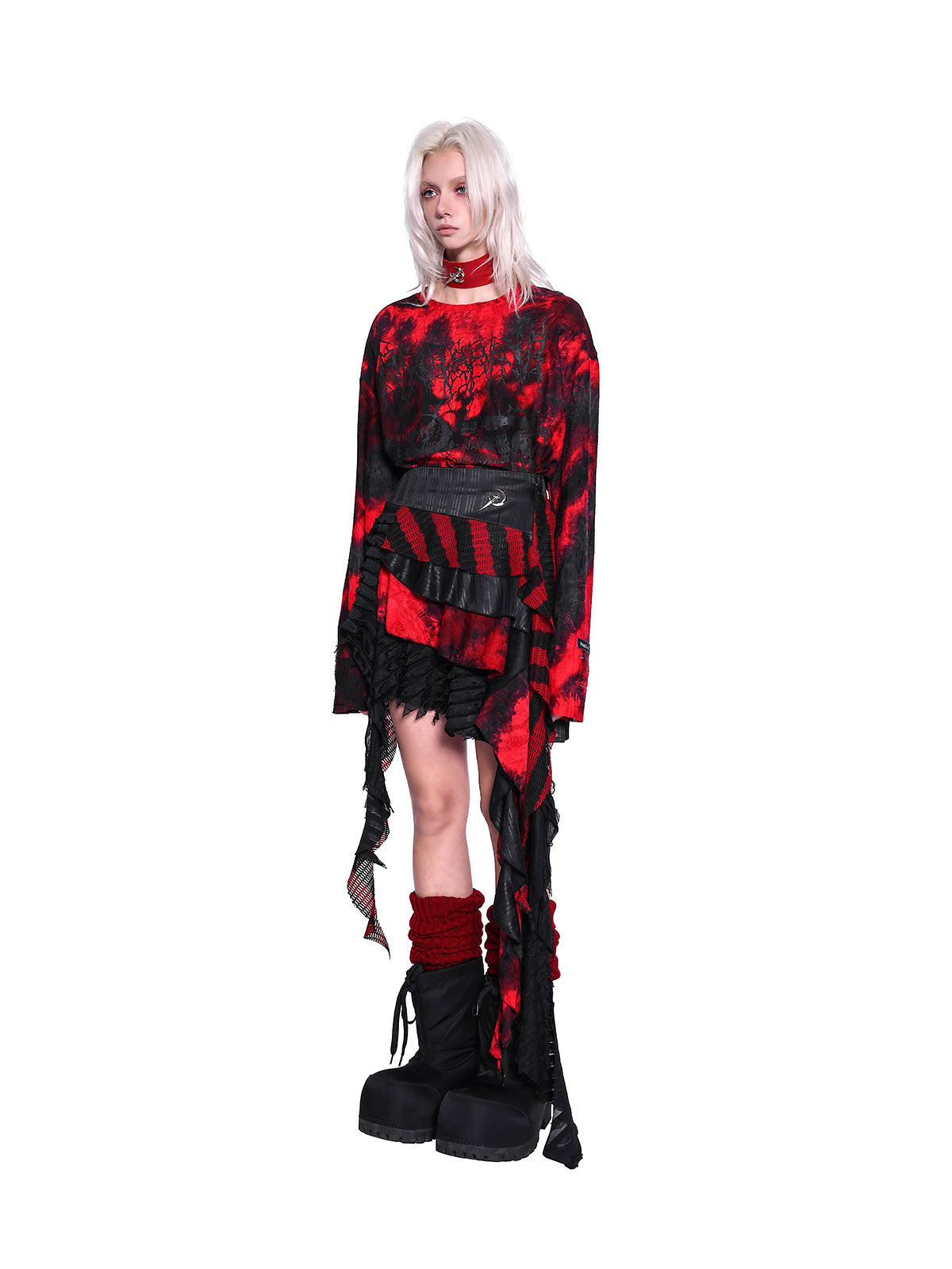 • 着古した、混ざり合った効果のための赤と黒のタイダイ