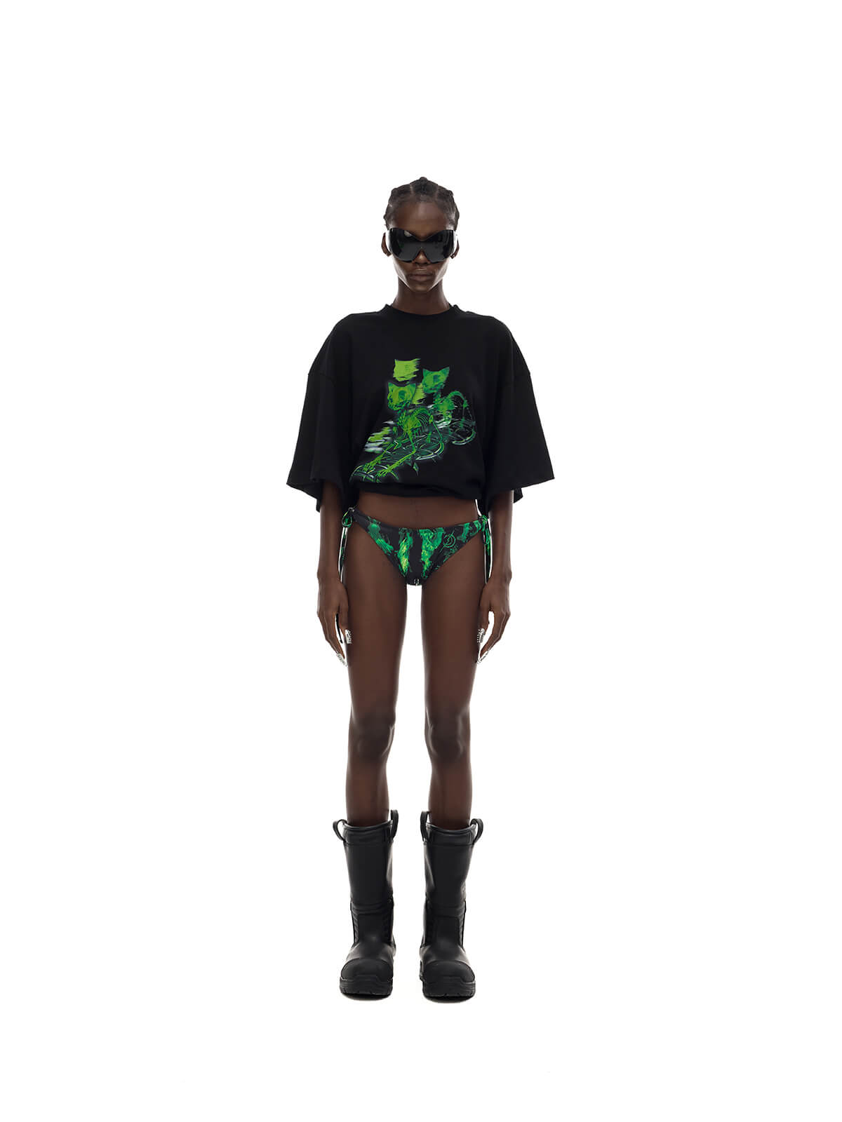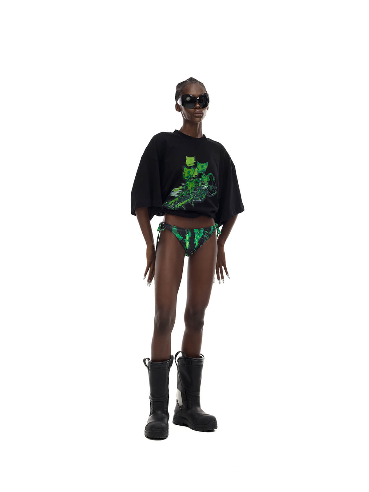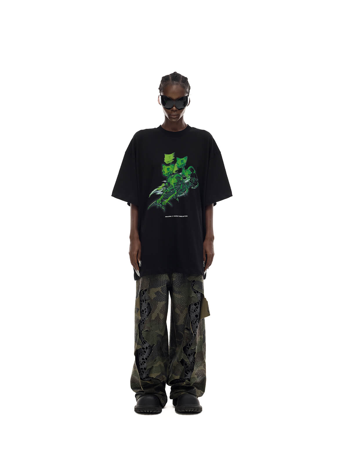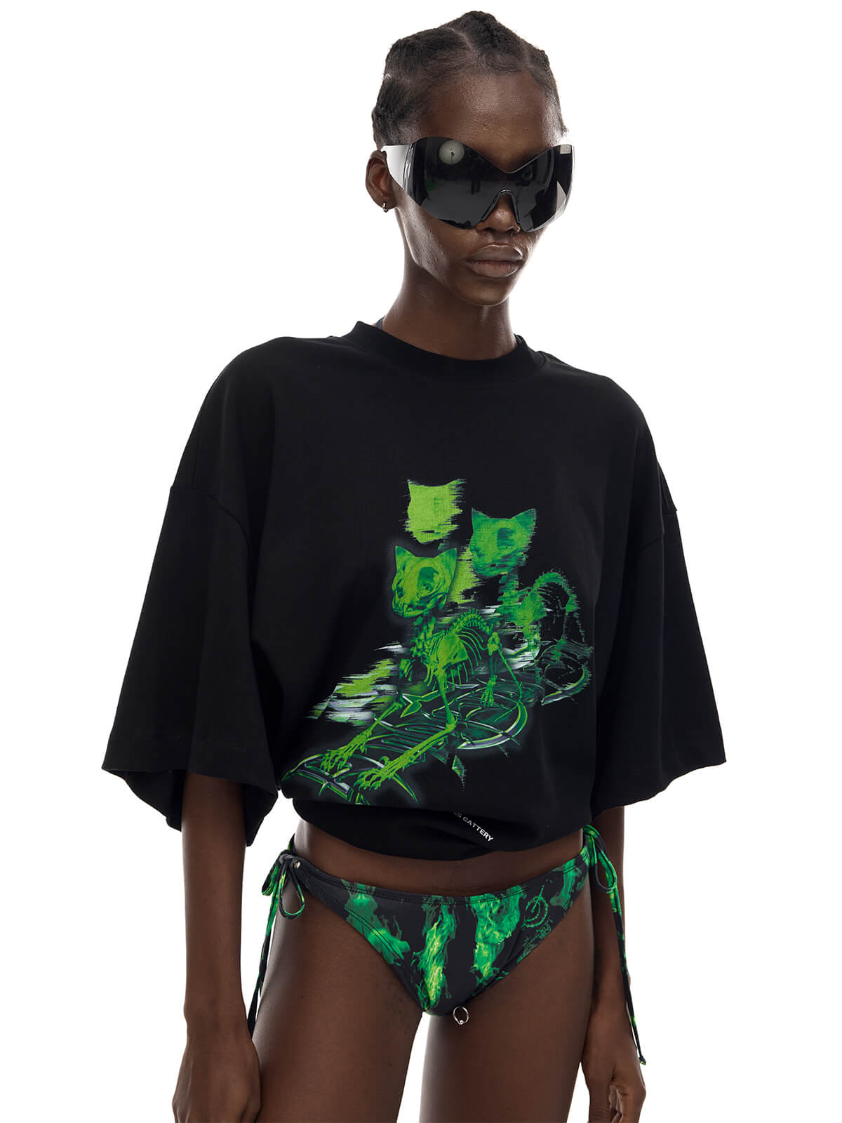 - 前面に緑のスケルトンキャットロゴプリント